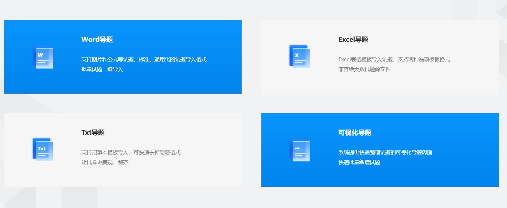 TXT文本導(dǎo)入:適用于簡單題庫遷移,支持標(biāo)準(zhǔn)格式快速解析。