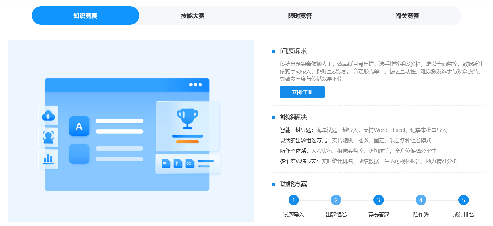 在當今數(shù)字化飛速發(fā)展的時代,各類知識競賽、技能比武、企業(yè)內(nèi)訓考核、校園學科競賽等活動日益頻繁,成為檢驗學習成果、選拔優(yōu)秀人才、提升團隊凝聚力的重要手段。然而,傳統(tǒng)競賽模式正面臨著前所未有的挑戰(zhàn):出題組卷依賴人工操作,效率低下且易出錯;選手作弊手段層出不窮,監(jiān)考難度大;賽后成績統(tǒng)計繁瑣,數(shù)據(jù)混亂難追溯;競賽形式單一枯燥,缺乏互動性與傳播力,導致參與熱情不高,活動影響力有限。