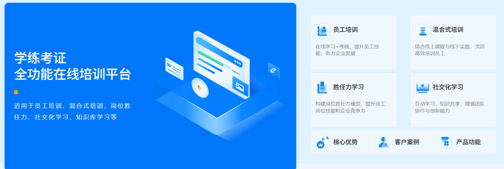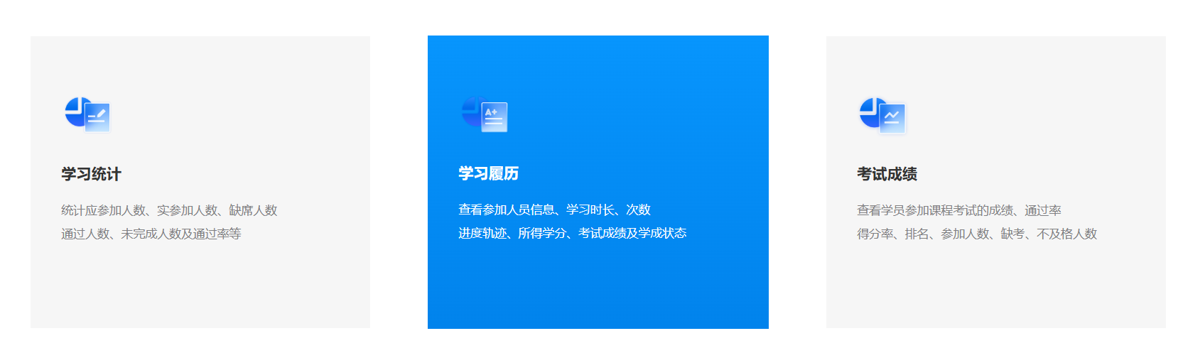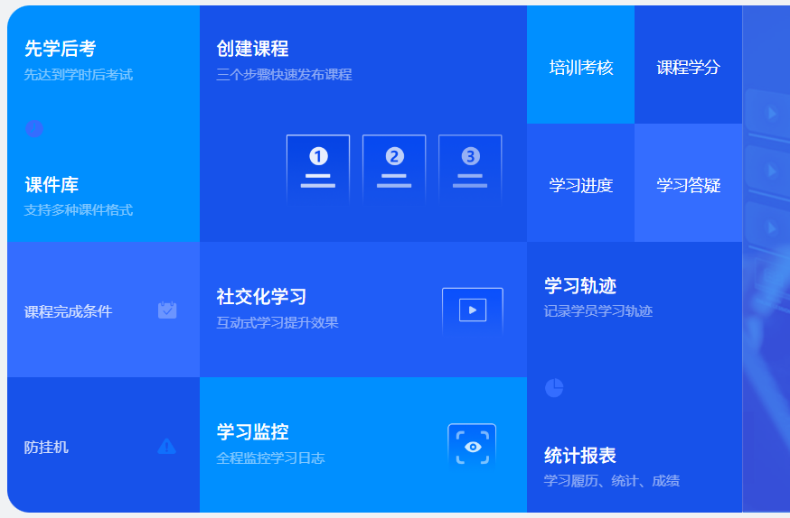 從課程發(fā)布、學(xué)習(xí)管理、考試測(cè)評(píng)到數(shù)據(jù)分析,一站式解決企業(yè)培訓(xùn)所有需求。